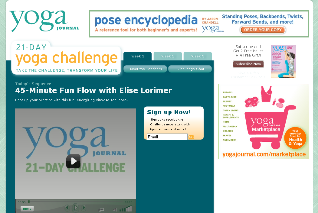 The next month, I purchased another copy of the magazine and found myself actually energized to try the featured poses at home. For all this talk of the dying of the printed word, it’s been great to have a magazine at hand to reference when I miss yoga class.